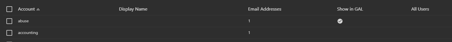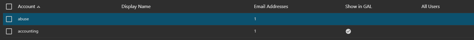 Now go into abuse and uncheck "Alias can be used as from address in webmail", "Show in Global Address List", and "Show as a room in chat (Enterprise Only)" and you get this result.