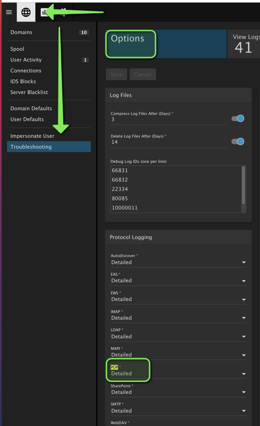 First make sure that the POP logs are set to detailed ( below ). If they are not set to detailed adjust them and then wait for the issue to happen again as the logs are not retro active.
