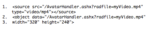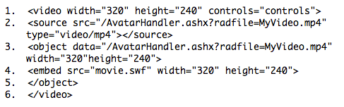 4. You will want to edit the "source src =" and "object data =" sections to point to the videos you have. You can use either videos uploaded to SmarterTrack or video files that are hosted elsewhere (on YouTube, on your own website, etc.).